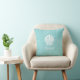 Un carré chic sur le thème de la plage d'aqua lance un oreiller avec une coquille de pétoncle girly contre une écriture française défraîchie. Personnalisez ce design de coquillages en ajoutant le nom de toute jeune femme féminine.