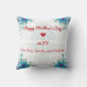 Faites votre propre photo et typographie élégante, moderne et chic lancer un oreiller pour montrer votre amour pour votre mère avec une photo que vous pouvez personnaliser et les textes personnalisables "À une Maman Extraordinaire" (sur le devant) et "Bonne Fête des Mères !" + coeur + année + noms (sur le dos). Le design comprend quatre coeurs, qui tiennent la photo des coins. Ils apparaîtront sur toute photo que vous téléchargez pour remplacer ce modèle de trois soeurs. Cette coussin est également décorée d'un cadre fleuri élégant avec des fleurs bleues et des feuilles bleutés verts, qui semblent également s'estomper dans l'arrière - plan en direction du centre de la coussin. Grand cadeau customisé pour la fête des mères ou pour l'anniversaire du récipiendaire.