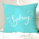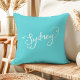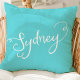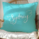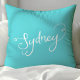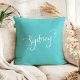 Coussin Chic Turquoise & Blanc Typographie Sydney