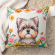 Coussin Chien adorable encadré de fleurs