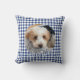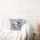 Cet adorable coussin de photos d'animaux de compagnie personnalisées avec le nom de votre choix fait un cadeau unique et mémorable. Pour les amoureux de les chiens (et les amoureux de les chats aussi !). L'Arrière - plan est dans un motif de chèque en en vichy bleu et blanc. Une partie d'une collection de Parcel Studios.