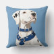 Illustration stylisée d'un chien dalmatien portant un collier bleu sur un fond bleu uni, mettant en valeur son apparence tachetée distinctive et son caractère amical.