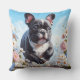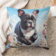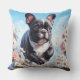 Coussin Chien-taureaux et fleurs français noir et blanc
