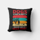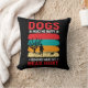 Coussin de design amoureux des chiens coloré avec rouge, blanc, bleu, jaune et crème sur un arrière - plan que vous pouvez changer à la couleur que vous voulez, dispose d'un arbre de silhouette et personne avec un chien et le texte dit Chiens Rendre Joyeux Humains Faire ma tête mal!