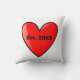Caractéristiques de conception ce adorables un chiffre couple de bâton. Le chiffre de bâton de fille et le chiffre de bâton de garçon se tiennent l'un à côté de l'autre et dans des leurs mains jointives est un coeur rouge. Il y a un crayon jaune qui finit de rédiger le chiffre couple de bâton. Au-dessous du graphique est le texte dans la police noire audacieuse d'amusement qui indique que "juste réuni" cependant le texte peut être customisé par vous. Au-dessus du chiffre graphique de bâton de couples est le texte qui doit être customisé avec les noms de couples. Du verso du coussin est un grand coeur rouge et l'intérieur le coeur rouge est texte dans la police noire qui indique l'est. 20XX, qui doit être customisé avec l'année de couples de l'année d'anniversaire de fiançailles ou de mariage. C'est une grande idée de cadeau pour des parties de fiançailles et des douches nuptiales !