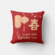 This red throw pillow is a personalized Lunar/Chinese New Year decoration.