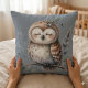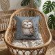 Coussin Chouette aquarelle mignonne dans un style floral e