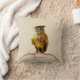 Chouette dorée et lune croissant sur un arrière - plan beige jettent l'oreiller. Le texte croissant peut être personnalisé.