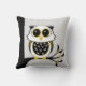 Un coussin à lancer avec un adorable hibou noir et blanc perché sur un membre avec des feuilles et des baies.
