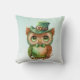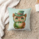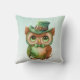 Un coussin avec une merveilleuse illustration fantaisiste. Un grand hibou brun aux yeux portant un chapeau vert et une cravate d'arc.