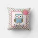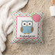 Un coussin personnalisé pour décorer la chambre de votre enfant ! Chouette douce avec ballons, sur un arrière - plan de pois de couleur assortis. Personnalisez avec n'importe quel nom ou texte.