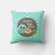 Coussin Chouettes mignonnes ; Aqua Green Chevron