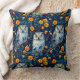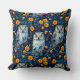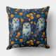 Coussin Chouettes sur arrière - plan floral, fleurs, feuil