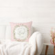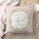 Ce design d'oreiller présente une couronne de fleurs roses sur fond rayé rose avec un texte qui dit "Christ le Seigneur est ressuscité."