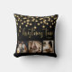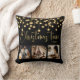 "Noël" en belle écriture sur un arrière - plan noir. Remplacez les photos par 3 de vos photos préférées personnelles. Faux-lampes/lanternes en or accrochés. Changez l'année et quel beau coussin. Élégant. Un cadeau parfait.