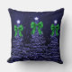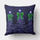 Coussin Christmas Sparkling Trees Navy Faux Green Bow