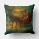 "Add a touch of magic with this throw pillow, showcasing a majestic reindeer gracefully walking through the snow. The sleigh behind is brimming with colorful presents, ready for a magical journey to Santa's workshop. Perfect for a festive and whimsical touch to your decor."