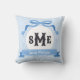 Coussin Ciel Bleu Monogramme à Ruban à Motif Grec Inversé