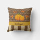 Chauffez votre maison cet automne avec ce nom de famille personnalisé jetez oreiller. Son design moderne présente des rayures de brun et de brun et un arrière - plan doux de pois brun clair. Un citrouille et des feuilles d'automne complètent le look et sont exposés élégamment au-dessus d'une bande d'or pour votre nom de famille. Cet oreiller de jetée est personnalisable et fait un grand cadeau d'automne personnalisé pour un ménage, douche nuptiale, mariage, anniversaire, Thanksgiving, ou autre vacances!