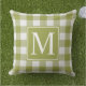 Farmhouse campagne style automne vert et blanc en vichy plaid motif, avec l'option de customiser ou de personnaliser avec un nom de famille monogramme de votre choix. Joli coussin extérieur couleur automne pour orner votre patio ou porche cabine avec et de l'humeur pour l'automne, les vacances Thanksgiving et Halloween.