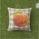 Ferme style champêtre automne beige brun et blanc cassé en vichy plaid motif, avec un citrouille orange vif sur le dessus. Avec la possibilité de customiser ou de personnaliser avec un nom de famille ou (limité) texte de votre choix. Coussin extérieur couleur automne amusant pour orner votre patio ou porche cabine avec et de l'humeur pour l'automne, les vacances Thanksgiving et Halloween.
