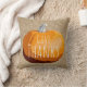 Ce carreau orienté de vacances comporte un citrouille orange dodu prêt pour la récolte avec les mots "donnent des mercis" dans le blanc. L'arrière - plan est une toile de jute de faux/copie tissée de motif dans les tonalités de semblable brun dans un sac à grain.
