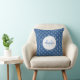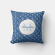 Un carré monogramme design lance un oreiller avec un motif bleu classique avec des coeurs tendance. Personnalisez en ajoutant votre nom et votre initiale monogrammée au cadre cercle chic. Partie de la collection de couleurs d'été classique de la chambre à coucher de Coeurs Bleus.