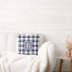 Oreiller jeté rustique moderne personnalisé avec monogramme sur motif buffalo check bleu marine.