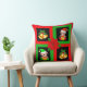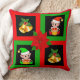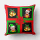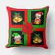 Coussin Cloches de Noël & elfe sur noir, vert & rouge
