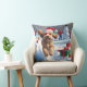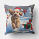 Coussin Cockapoo courant dans la neige avec un chapeau de