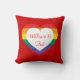 Ce coussin dispose d'un coeur avec un motif de bande arc-en-ciel superposé par un coeur blanc contenant un modèle de texte personnalisable. Montrez vos vraies couleurs, soutenez l'égalité dans le mariage et célébrez le gay pride.
