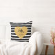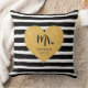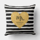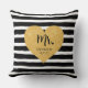 Coussin Cœur Doré Élégant Rayures Noires Juste Marié