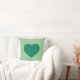 Ce coussin est doté d'une brigade de coeurs verts Kelly d'un côté et d'un grand coeur vert kelly de l'autre — les deux sur un arrière - plan vert clair.