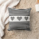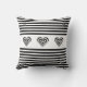 Coussin Coeurs concentrés sur rayés noirs et blancs