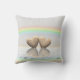 Coussin avec mon illustration originale de deux cœurs en bois flottant sur l'eau sous un arc-en-ciel. Le texte indique "5 ans".
