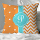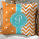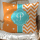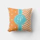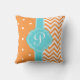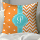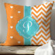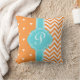 Coussin Cœurs et Chevron à monogramme orange et turquoise