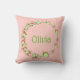 Un oreiller à jetons doux pour la pépinière ou la petite fille dispose de coeurs dessinés à la main et de papillons couronnes dans les couleurs pastèques de vert et rose avec texte central personnalisable.