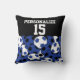 Coussin Collage de balle de soccer bleu foncé | Nom et num