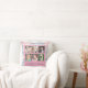 Cet oreiller de jetée est un beau cadeau spécial de conservation pour une grand-mère. Il dispose d'un collage de 6 cadres photo pour des photos de ses petits-enfants. La coussin est agrémentée d'un arrière - plan rayé rose & bleu aquarelle. Texte personnalisé : Bénédictions de grand-mère