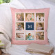 Coussin Collage photo de monogramme à couleur de fond modi