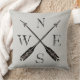 Coussin de Compass rustique et simple avec lettres et flèches usées en noir sur arrière - plan gris clair. Le design est imprimé à l'avant et à l'arrière. Recherchez cette conception sur d'autres produits aussi de Simple Living.