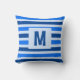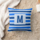 Ce coussin mignon présente des rayures bleues et peut être customisé avec une initiale.