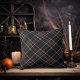 Oreiller décoratif à conception carreaux navy Dark Academia. © Dark Heart Desires. Cet oreiller décoratif Dark Academia présente une conception carreaux navy.
