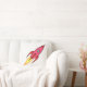 Oreillers à lancer Carré de conception de fusée roses et blanches Retro Rocket Ship Cute & Fun Cartoon Design  Idéal pour un décor de chambre, une garderie ou un cadeau de baby shower sur le thème de l'espace.  Cette vintage roquette rétro rose-chaud s'enfonce dans l'espace. Le dessin animé est idéal pour les enfants, les jeunes au coeur, les jeunes filles geeks, ou toute personne intéressée par les navires spatiaux, l'exploration spatiale, les sciences aérospatiales, l'ingénierie aéronautique, la NASA, la science, les robots, les astronautes, ou les choses que l'on trouve dans le cosmos, comme les planètes, les étoiles, les galaxies, les phases de la lune, les météorites, les satellites, les comètes, les comètes et le humour geek. S'il s'agit d'un cadeau, vous trouverez dans la liste des ministères des fournitures pour l'artisanat du papier d'emballage, du ruban, des autocollants, des sacs, des boîtes, etc. Tirez pour la lune. Je t'aime sur la lune et de retour. Le pouvoir des filles, l'autonomisation des femmes, l'autonomisation des femmes, le féminisme, le don féministe pour les filles.