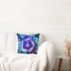 Ce coussin a un design violet représenté dessus.