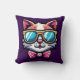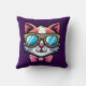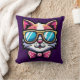 Add a playful twist to your living space with this vibrant throw pillow featuring a cartoon-style cat wearing oversized blue sunglasses and a pink bow. Set against a rich purple background, this design pops with personality and charm. Perfect for cat lovers, creative interiors, and anyone who enjoys bold, whimsical home accents.
