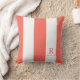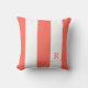 Coussin Corail et rayures blanches Monogramme Été extérieu