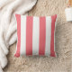 Des larges rayures roses et blanches de corail sur un oreiller design à lancer. Des oreillers à rayures font la part belle à la décoration, avec des canapés, des chaises et des chambres aux motifs à motifs et aux couleurs massifs. Idéal pour les bateaux à moteur, les salons, les chambres, les cottages, les maisons de plage et les chambres pour enfants.