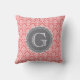 Coussin Corail Floral Damask Patte Gris Monogramme