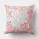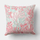 Coussin Corail rose vif turquoise peint à la main de récif